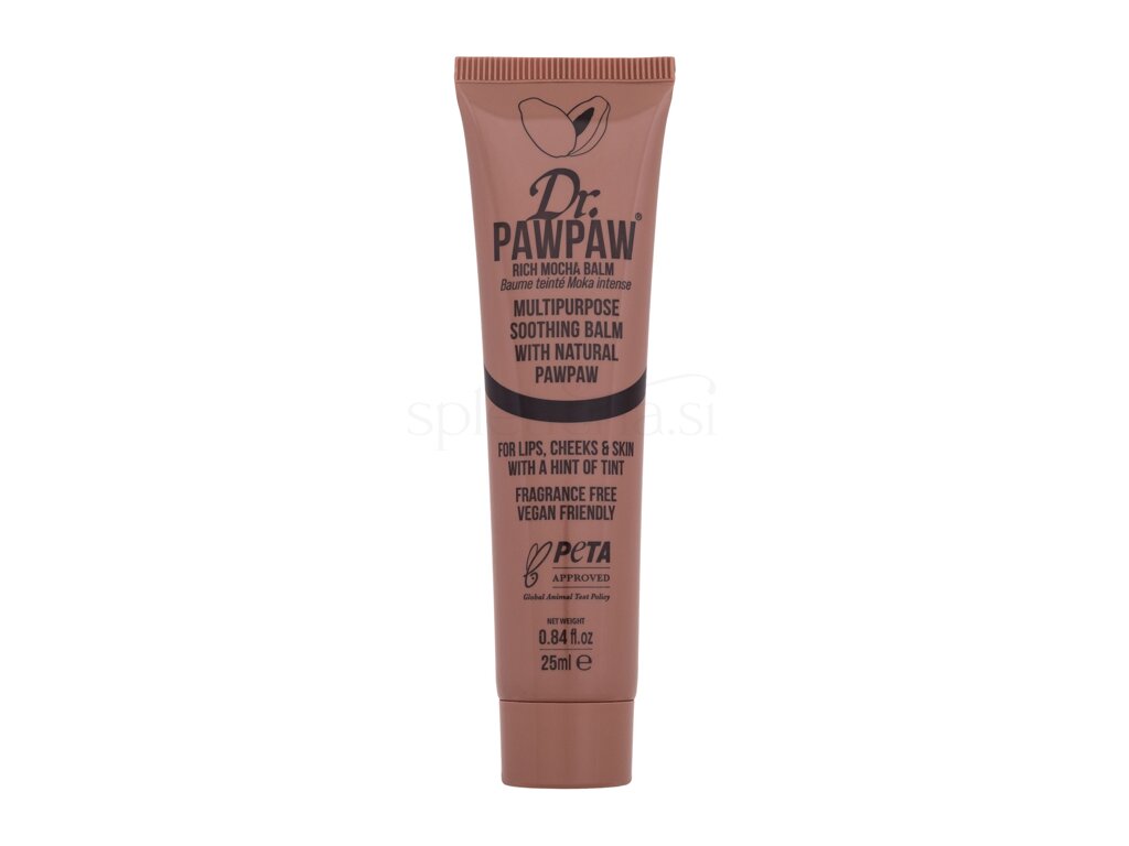 Dr. PAWPAW Balm Rich Mocha je večnamenski balzam za ustnice, lica in oči, ki je primeren za vse tene kože in ustvarja prav poseben prefinjen videz.