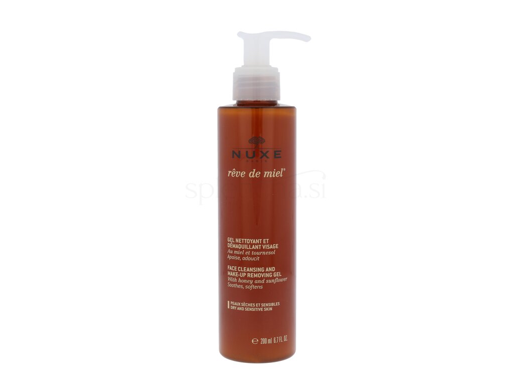 Čistilni gel Nuxe Reve de Miel popolnoma očisti kožo in odstrani umazanijo in ličila s kože. Vsebuje med, ki pomirja kožo in preprečuje njeno draženje. Ta čistilni gel vas bo navdušil s svežim občutkom, saj bo vaši koži dal udobje in svežino. V enem koraku dobite popolnoma čisto in svežo kožo.