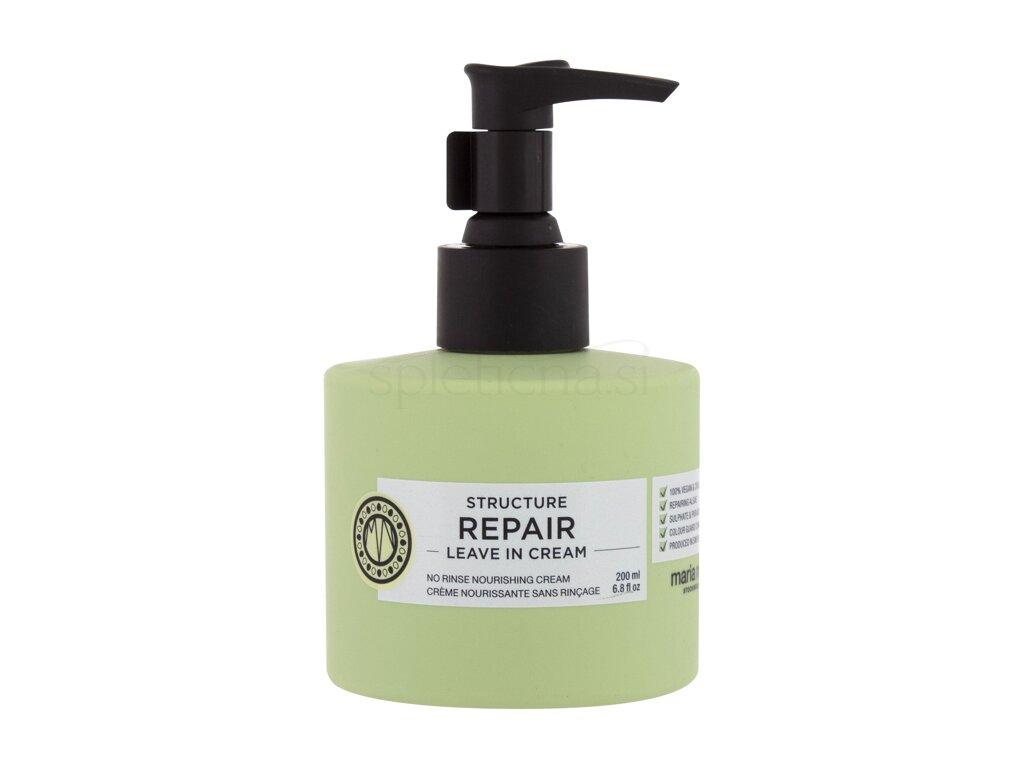 Maria Nila Structure Repair Leave In Cream z izvlečkom alg, ki popravi in obnavlja poškodovane lase, zagotavlja vlago, prehrano, tesni razcepljene konice in zaščiti lase pred vročino med njihovo toplotno obdelavo. Color Guard Complex ohranja barvo tako, da lase ščiti pred UV sevanjem in prostimi radikali.
