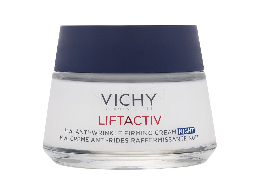 Vichy Liftactiv Derm Source Night Cream je nočna krepilna krema za obraz proti gubam. Vsebuje Derm Source, ki znanstveno dokazalo pospeši obnovo kože in ji daje mladosten videz. Učinkovina Liftactiv deluje učvrstitveno in z dolgotrajnim učinkom glajenja globokih gub na čelu, vratu in predelu okoli oči. Krema je narejena iz nemastne in nelepljive teksture, zaradi česar je uporaba udobna. Narejena je iz pomirjujoče termalne vode. Ne vsebuje parabenov.