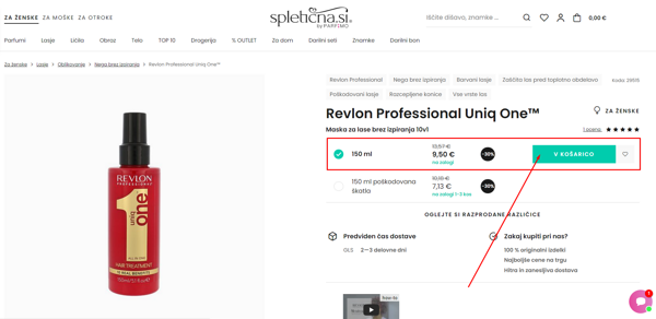 Ko ste na naši spletni strani našli vse izdelke, ki jih želite kupiti, jih je potrebno dodati v košarico, kar storite s klikom na zelen gumb.