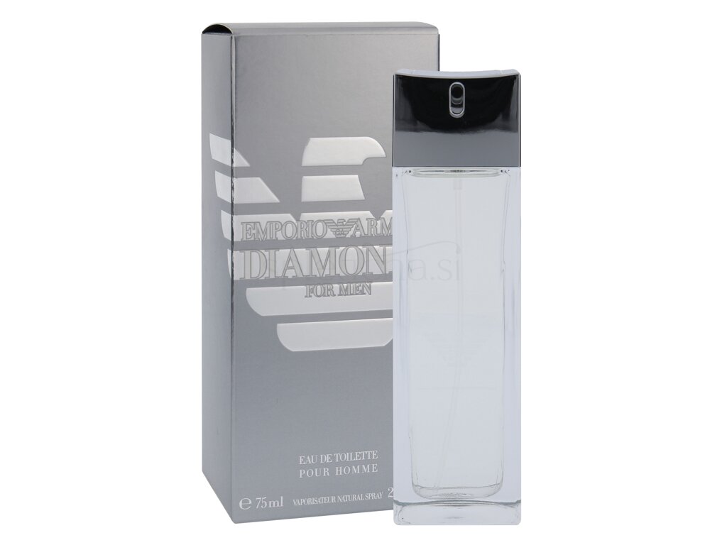 Parfum Giorgio Armani Diamonds for Men je fascinanten, privlačen, karizmatičen; izžareva edinstveno naravno avro. Vsi pogledi se upirajo le vanj. Je kot diamant, ustvarjen za to, da sije. Ni se mu mogoče upreti. Dišava Giorgio Armani Diamonds for Men ima žareč, pogumen začetek: prefinjeno svežino italijanskih citrusov poživlja električna eksplozija sečuanskega popra. Možato, burno srce v sebi združuje cedro, klasičen moški ton in nepričakovano lepoto prijetno znanega in intimno zapeljivega kakava. Plemenito osnovo iz gvajakovega lesa in intenzivnega vetiverja poživlja ambroksan s toplimi mineralnimi poudarki. Diamonds for Men je sladek, nekoliko gurmanski vonj s temnejšo osnovo.