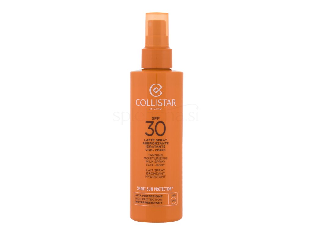 Collistar Smart Sun Protection Tanning Milk Spray SPF30 je inovativno mleko v spreju, ki združuje enostavno nanašanje z absolutno avantgardno formulo, ki zagotavlja izjemno hitro porjavelost in hkrati temeljito neguje kožo.