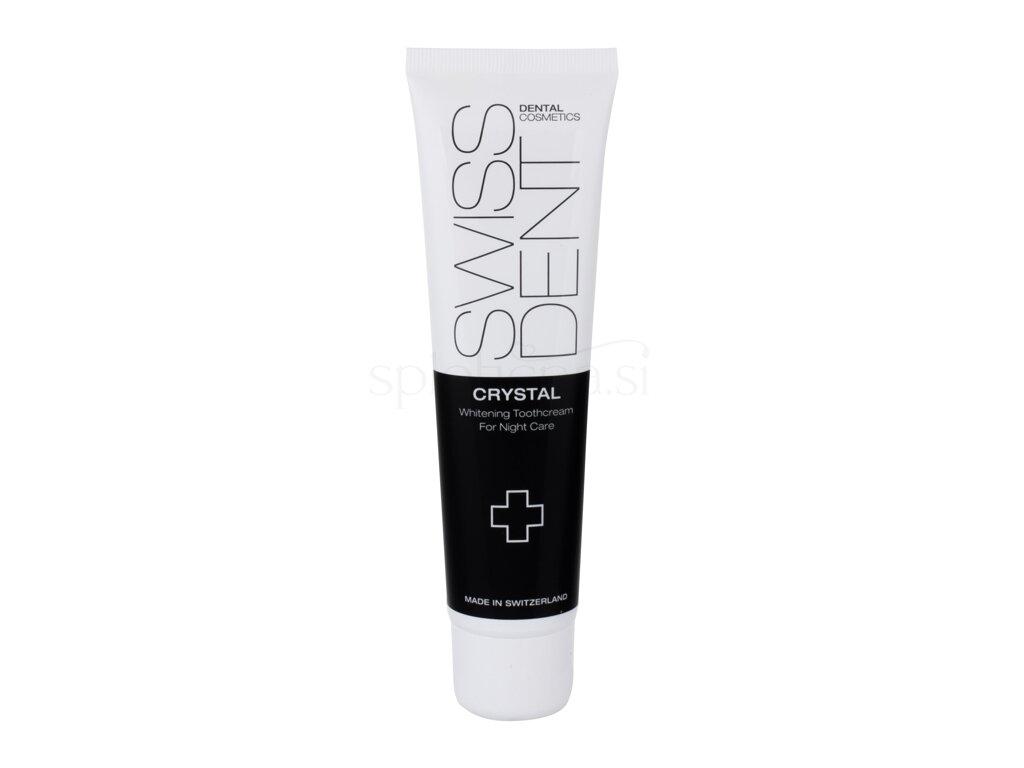 Swissdent Crystal Repair Whitening Toothcream zobna krema za beljenje zob učvrsti vašo zobno sklenino. Odlično odstranjuje obarvanost zob. Regenerira zobno sklenino in dlesni. Se vsebuje parabenov in fluorida.